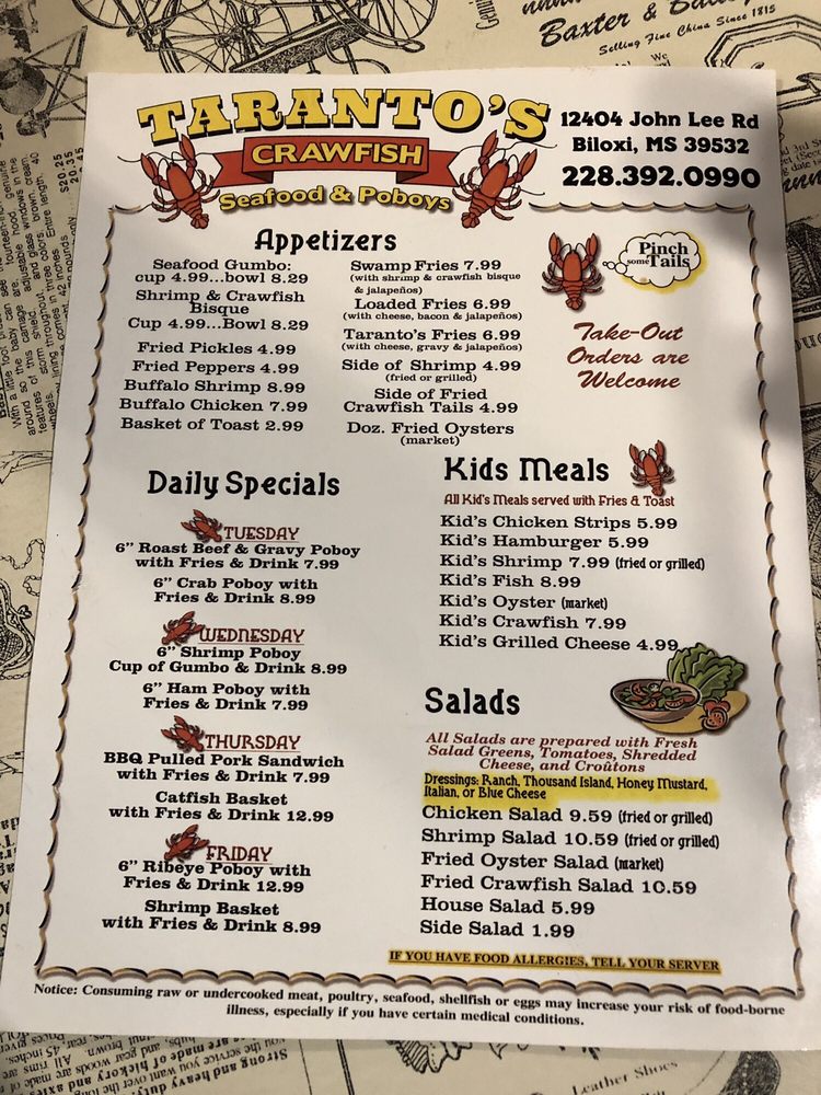 Customers rave about the fresh and crispy seafood dishes, highlighting the generous portions and fast, friendly service. The menu features a variety of appetizers, including buffalo shrimp and fried pickles, perfect for sharing with a group. With options for takeout and catering, Taranto's Crawfish is a must-visit spot for seafood lovers in the area.